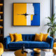 An invitation to contemplation, where vibrant yellow and deep blue meet in a poetic dialogue. Layers of paint and expressive strokes create textures that evoke movement and tranquility simultaneously. White acts as a bridge between extremes, while subtle details add depth. Perfect for environments seeking inspiration and balance, it transforms spaces into creativity refuges. A piece that speaks directly to the soul, combining energy and peace in a single artistic gesture.