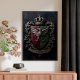 Bring the grandeur of medieval art into your home with this châteaucore gallery wall art print. Shield divided per pale in deep burgundy and forest green, a stylized raven as the central charge, supported by two oak branches, a crown above, a banner below reading "In Umbra Floresco" makes this art piece perfect for dark academic, gothic, and medieval-aesthetic interiors — this piece create an atmospheric wall that feels centuries in the making