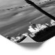 Uma captura a preto e branco do Olho de Londres ao fundo com um edifício clássico de Londres à direita. Uma escultura pode ser vista em primeiro plano com um céu dramático sobre a cabeça