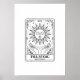 A beautiful minimalist tarot card design featuring 'The Stoic'. This artwork illustrates a serene sun with closed eyes, radiating calm energy over open meditative hands. Designed in a clean vintage line art style with Roman numerals (XVII), symbolizing balance, self-control, and inner peace. Perfect for fans of stoicism, tarot aesthetics, and mystical minimalist art. Great for those who value mindfulness and ancient wisdom.