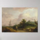 Paisagem costeira com um Pastor e seu bando por Thomas Gainsborough, 1783-1784. Thomas Gainsborough era um pintor de retrato e paisagem inglês, relator de parecer e impressora. Ele superou seu rival Sir Joshua Reynolds para se tornar o retratista britânico dominante da segunda metade do século 18. Ele pintou rapidamente e as obras de sua maturidade se caracterizam por uma paleta clara e traços fáceis. Preferia paisagens a retratos, e é creditado (com Richard Wilson) como o originador da escola britânica de paisagens do século XVIII. Gainsborough foi um membro fundador da Academia Real.