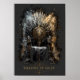 A high-quality wall art poster featuring the dark 'Throne of Dust' design. An intricate clockwork throne made of gears, skeletons, broken swords, and a glowing golden central mandala sits over faint occult symbols. Surrounded by black and gold grunge paint splatters, the text 'THRONE OF DUST' is displayed at the bottom. Perfect for gothic home decor, heavy metal rooms, or industrial dark fantasy spaces.