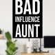 Má Influência Tia Autie design. Design tipográfico com citação engraçada, dito engraçado. Design de tipografia engraçada com citação de tia, tia dizendo. Tia engraçada cita. Tia engraçada diz. Tia design. Tia design. Tia design com tipografia engraçada. Versão preta e branca