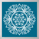 Esta mandala branca senta-se sobre fundo lacrimogêneo. As cores são muito calmantes e pacíficas. Parte da Coleção Rosenn Mandala.