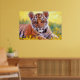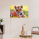 A Siberiana ou Bengala Tiger Baby Cub fecha a fotografia feita em pintura com laranja e amarelo vibrantes.