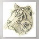 Tiger overlooking a pentacle, symbol of the 5 elements