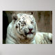 Um tigre branco isolado sozinho com fundo de rocha olhando para você