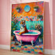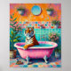Poster Tigre Whimsical em Banheira Rosa Boho Bathroom Art