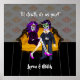Decorativo Til Death Nos Part design retratando um casal de Peles de Açúcar com o cabelo roxo moderno sentado em um sofá amarelo veludo e damask parecem papel de parede. Tipografia personalizável para você torná-la exclusivamente sua. Presente ideal para chás de panela, chás casais e como festa de noivado e decoração de halloween. Arte original de Suki, todos os direitos reservados.