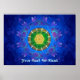 Uma imagem fractal do tipo rotacional que se assemelha à tie dye dos anos 60; multicolorida com azuis e amarelos predominantes. Personalize adicionando seu próprio texto.