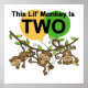 Três pequenos macacos balançando de uma árvore em Swinging Monkeys Birthday T-shirts, fatos-chave, canecas, cartas, sacos de tote, botões e outros itens para um segundo aniversário de tema macaco que o seu filho vai amar!