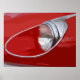 Imagem detalhada do farol E-TYPE JAGUAR com pintura vermelha e trim cromo