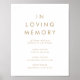 Este cartaz memorial com tipografia chic gold em memória carinhosa é perfeito para um casamento moderno. O design simples apresenta tipografia clássica minimalista preta e branca com um toque rústico boho. Personalizável em qualquer cor. Mantenha o design minimalista e elegante, como está, ou personalize-o adicionando seus próprios gráficos e obras de arte.