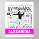 Polpa de tipografia de ginástica. Muitas palavras de ginástica rodeiam esta adorável ginasta. Tem estrelas decorativas e um campo de texto personalizado para você adicionar seu próprio nome! As cores são brilhantes em rosa, azul e verde para destacar o preto. ©gollygirls.com
