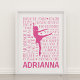Que garotinha não adoraria essa adorável poster rosa personalizada com balé apresentando uma bailarina no centro e balé em seu redor? Personalizada com o nome dela, esta arte de parede faz um excelente extra ao quarto da sua dançarina. Também estão disponíveis rubricas complementares. Peça agora!