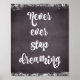 Tipografia do quadro: Impressões de Poster da Cotação de Sonho. Vintage inspirou fundo preto no quadro, com bordas antigas inspiradas no giz, 'Nunca pare de sonhar'. Veja mais no Quote Life Boutique.
