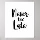 Uma tipografia inspiradora cita impressão de arte que diz Nunca Mais Tarde em um design de texto preto e branco de tendências.