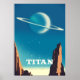 Titan e o planeta aninhado Saturn Vintage Estilo Arte Espacial.