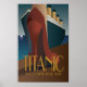 Poster do estilo Art deco do famoso navio que navegou de Southampton England no dia 10 de abril de 1912 para Nova Iorque na sua primeira viagem. Tragicamente, ela nunca chegou ao seu destino, tendo atingido um icebergue no Atlântico Norte cinco dias depois, resultando na perda de cerca de 1.500 vidas de um total estimado de 2.224 passageiros e tripulantes a conselho. Leia mais em https://en.wikipedia.org/wiki/Titanic