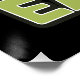 "Titans of the Earth " T-REX - Tyrannosaurus Rex - Logotipo de desenho engraçado fóssil do famoso dinossauro contra um fundo laranja vívido.