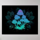 Misteriosos, bioluminescentes, alucinogênicos, ferramentas brilhantes com arbustos de plantas pântanas à noite, fundo escuro e brilhante. Cogumelos brilhantes. Goblincore, Mushroomcore