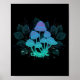 Misteriosos, bioluminescentes, alucinogênicos, ferramentas brilhantes com arbustos de plantas pântanas à noite, fundo escuro e brilhante. Cogumelos brilhantes. Goblincore, Mushroomcore
