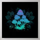 Mysterious, bioluminescent, hallucinogenic, bright toadstools with bushes of marsh plants on night, dark, glowing background. Glowing mushrooms. Goblincore, Mushroomcore,