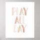 Brilhe seu quarto especial, quarto ou sala de jogos com este impressão de arte "Brincar o Dia Todo". Esta decoração de parede de aquarelas feliz e divertida trará um salto de cor para qualquer sala.