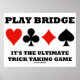 Poster com quatro naipes de placa junto com a ponte comum dizendo "Toque Ponte é o Último Jogo de Pegada de Truque". Faça com que os outros façam uma dupla tomada no que o jogo da ponte / ponte duplicada é sobre isso com este poster!