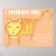 This design captures the essence of a cat's affection: a grudging tolerance that somehow feels like love. Featuring an orange cat with an undeniable air of indifference and the phrase "I tolerate you, which is my version of love," it's perfect for anyone who understands the unique charm of a seemingly apathetic feline. It's the ideal gift for a friend, family member, or partner who appreciates a bit of dark humor and a whole lot of cat attitude.