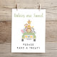 Bonito sinal de favor e de guloseimas para o seu chá de fraldas com "Bebês são doces, por favor, façam um tratamento" numa mistura de uma engraçada escrita verde-selva e uma simples tipografia de cinza e uma ilustração com aquarela de animais do zoológico bebê (leão, elefante, zebra, macaco e girafa) empilhados num veículo safari