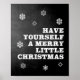 Esta divertida arte de muro de Natal imprimível será a adição perfeita ao seu decoro natal durante o feriado durante muitos anos. Esta design apresenta a letra "Tenha um pequeno Natal feliz" em uma letra branca sobre um fundo preto de quadro negro, com uma borda de neve.