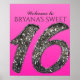 Cartaz/Poster de Tonalidade de Rosa e Brilho Prateado 16 Dezesseis Festa.
