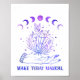 A poster Celestial apresenta fases de lua roxa com uma mão encantada segurando um aglomerado de cristais e o texto "Faça hoje mágico".