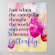 "Logo quando a lagarta pensava que o mundo estava acabado, ela se tornou uma borboleta", cita.