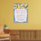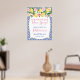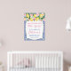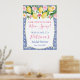 Limões em aquarela e rosas e peônias cor-de-rosa contra um fundo de padrão de azulejos azuis cobalto e branco para este elegante sinal de boas-vindas de Chuveiro de Noiva ou de Bebê.