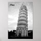Foto em preto e branco da torre inclinada de Pisa, Itália
