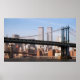 Linha do horizonte de Manhattan a partir do East River em Nova Iorque. Manhattan e Brooklyn Bridges. Antigas torres do World Trade Center.