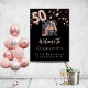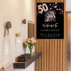 Um poster de boas-vindas para uma glamourosa festa de aniversário 50ª. Um fundo preto clássico decorado com estrelas douradas rosa. Personalize e adicione uma foto e um nome. O número 50 é escrito com uma fonte no estilo do balão.