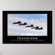 Equipe de demonstração de voo dos Marinhos Blue Angels nos EUA em uma performance pública. A palavra "TRABALHO EM EQUIPE".
