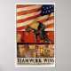 Vintage World War I homefront producational poster motivational "Trabalho em equipe Wins", por Hibberd V.B. Kline for the United States Shipping Conselho Emergency Fleet Corporation, 1918.