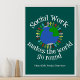 O trabalho social faz com que o mundo gire poster com sua empresa personalizada no fundo. Um belo presente de serviços sociais para seu assistente social favorito. Possui um grupo de pessoas de mãos dadas ao redor do planeta azul e verde Terra. Juntem-se para fazer uma mudança ajudando as pessoas.