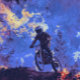 Este motociclista está correndo habilmente através das trilhas queimadas a caminho da segurança. Excelente para Crianças e pessoas Esportivas de todas as idades.