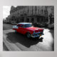 Foto preta e branca de Havana, Cuba, com um carro americano clássico passando a cor.