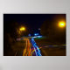 Foto do tráfego noturno sobre longa exposição com carro da polícia capturado