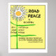 "A PAZ RODOVIÁRIA é saudável para as crianças e outros seres vivos PARTILHANDO A ESTRADA É UM PASSO EM DIREÇÃO À PAZ MUNDIAL", com flor em fundo amarelo
