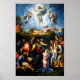 Raffaello Sanzio da Urbino (28 de março ou 6 de abril de 1483 - 6 de abril de 1520), conhecido como Rafael foi pintor e arquiteto italiano do Alto Renascimento. Sua obra é admirada pela clareza de forma, facilidade de composição e realização visual do ideal neoplatônico do grandioso humano. Junto com Michelangelo e Leonardo da Vinci, ele forma a tradicional trindade dos mestrados excelentes daquele período. Raphael foi extremamente produtivo, dirigindo um workshop invulgarmente grande e, apesar de sua morte inicial aos 37 anos, deixando um grande trabalho. Muitas de suas obras se encontram no Palácio do Vaticano, onde as salas de Raphael frescas foram a obra central e maior de sua carreira. O trabalho mais conhecido é a Escola de Atenas no Vaticano Stanza della Segnatura. Depois de seus primeiros anos em Roma, grande parte de seu trabalho foi executado por seu workshop em seus desenhos, com considerável perda de qualidade. Ele foi extremamente influente em sua vida, embora fora de Roma seu trabalho fosse conhecido principalmente por suas impressões colaborativas. Citação: Wikipedia