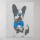Um belo e engraçado animal de moda tradicional, um buldogue francês com arco azul brilhante e óculos. preto, imagem de filhote de filhote de cinza, vintage, antigo grunge, folha de fundo de cinza angustiada, pavão, coleira, cinza, preto, fofo, divertido, brilhante, risada, moda. Cachorro, animal, cachorrinho, raça de cachorro, animal, amante de cachorro. Personalize-o com seu nome de palavra ou frase favorita clicando no botão personalizar e adicionando texto, escolha a fonte e a cor do texto. Impressão de imagem
