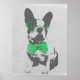 Um belo e engraçado cão-teta francês, com arco e óculos verdes brilhantes. preto, cinza, filhote de cachorro, vintage, antigo grunge antigo, folha de fundo de cinza angustiada, neon, verde vibrante, cinzas, preto, bonito, divertido, brilhante, risada, moda. Cachorro, animal, cachorrinho, raça de cachorro, animal, amante de cachorro. Personalize-o com seu nome de palavra ou frase favorita clicando no botão personalizar e adicionando texto, escolha a fonte e a cor do texto. Impressão de imagem