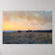 "Three Riders in the Kansas Flint Colinas", por Catherine Sherman No pôr do sol, três cavaleiros apressam-se para uma área a ser queimada nas Colinas Flint do Kansas. A fumaça já enche os céus e as plumas sobem no vale além. Os ancoradouros replicam incêndios naturais quando queimam a pradaria a cada poucos anos para destruir as mudas de árvores e espécies de plantas alienígenas, que preservam a pradaria como prado. O bioma das pradarias de tallgramíneas depende de incêndios nas pradarias, uma forma de fogo selvagem, para sua sobrevivência e renovação. A pradaria de tallpopular sobrevive em áreas inadequadas para arado, como esta seção do campo rochoso das Colinas Flint, que corre de norte a sul através do Kansas centro-leste. Uma vez vasta, a pradaria da grama alta encolheu apenas 1 a 4% do seu tamanho anterior na América do Norte.